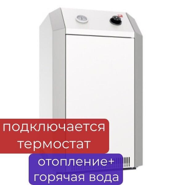 Бюджетный напольный котел российского производства. Может работать энергонезависимо (без света) — единственный из нашего списка. Но может работать и с «электроникой» — комнатным термостатом, устройством управления косвенным бойлером, турбонаддувом (докупается отдельно). Очень полезно для сел, где часто отключают свет.