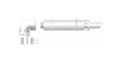 - Совмещенный дымоход используется в котлах с закрытой камерой сгорания. Он короткий, т.к. используется турбина, которая принудительно «выдувает» все продукты сгорания и таким образом создает тягу. Обычно длиной — 1 метр. Но если не хватает — можно докупить колена и удлинения.